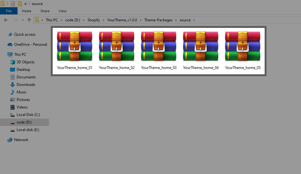 All the themes file need to be uploaded to Shopify store are stored on themes folder.